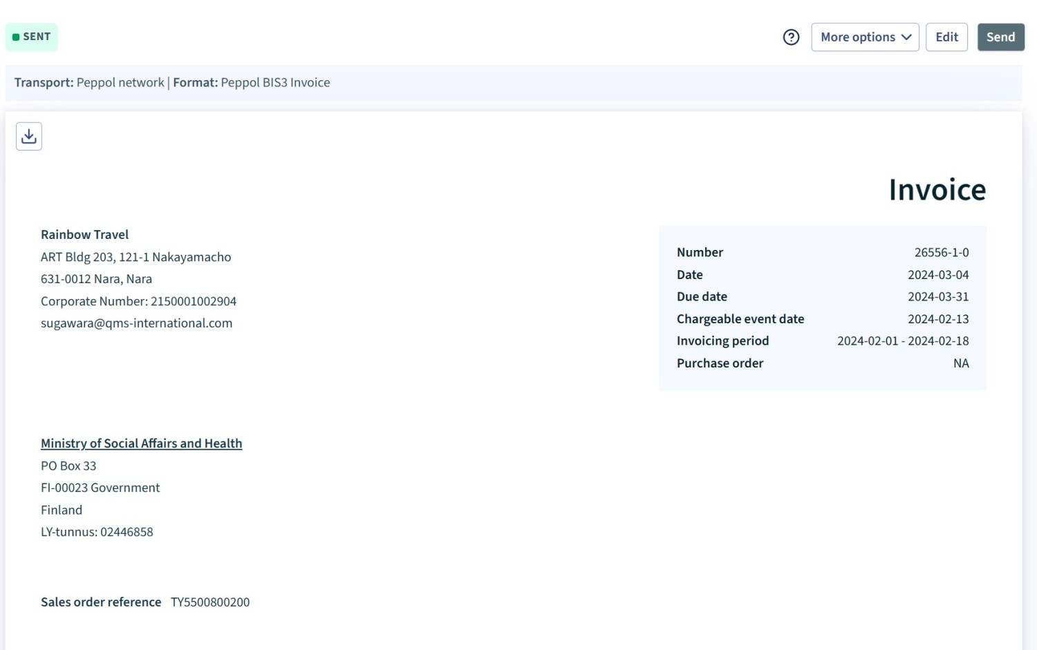 March 6, 2024 is a new anniversary both for Japan and Finland Peppol Authority. The first commercial Peppol e-invoice was successfully sent from a Japanese company to the Finnish government. Although it is a BIS-3 specification, we created an XML with the cooperation of members of the Japan Peppol Authority, and after several trials, we were able to successfully send the invoice.