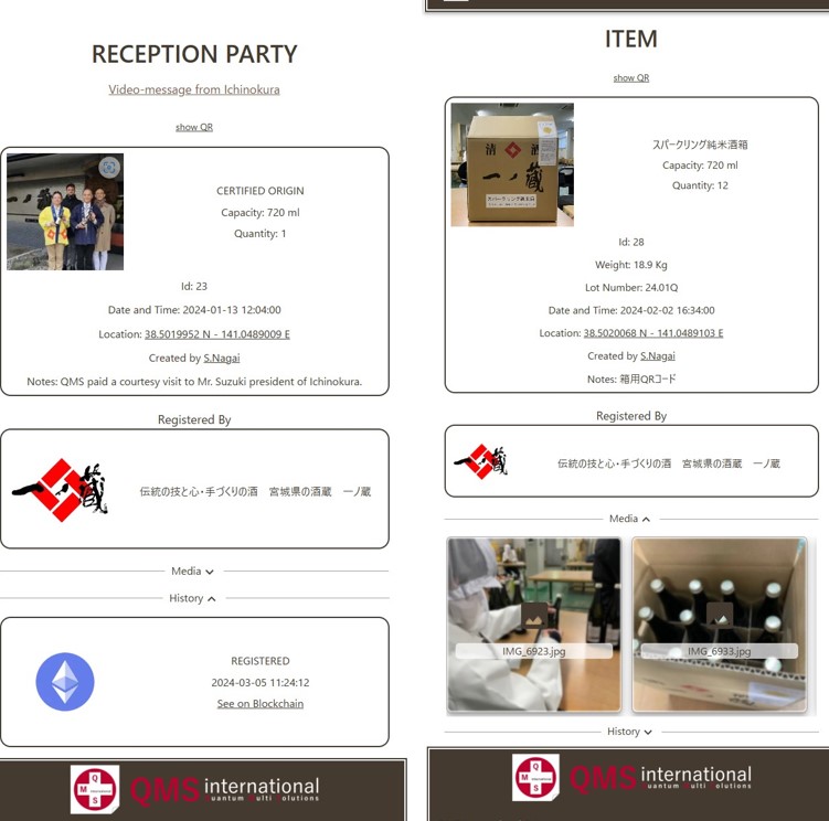 On 8th March 2024 in Rome (Italy), Ichinokura used our QMS-TRACE during an international reception ceremony. Their stand had only 2 types of Sake and QR Codes, which represented their commitment to digital x tradition, to fill the gap between age old practices and modern technological advancements.