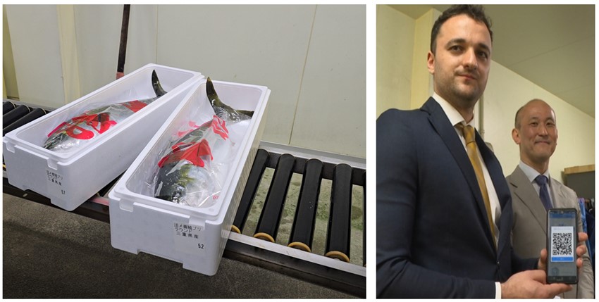 Some pieces of the lot have been shipped to a renewed restaurant in Tokyo where they have been cooked and served to customers, which could verify the quality of the product by simply scanning a QR code.