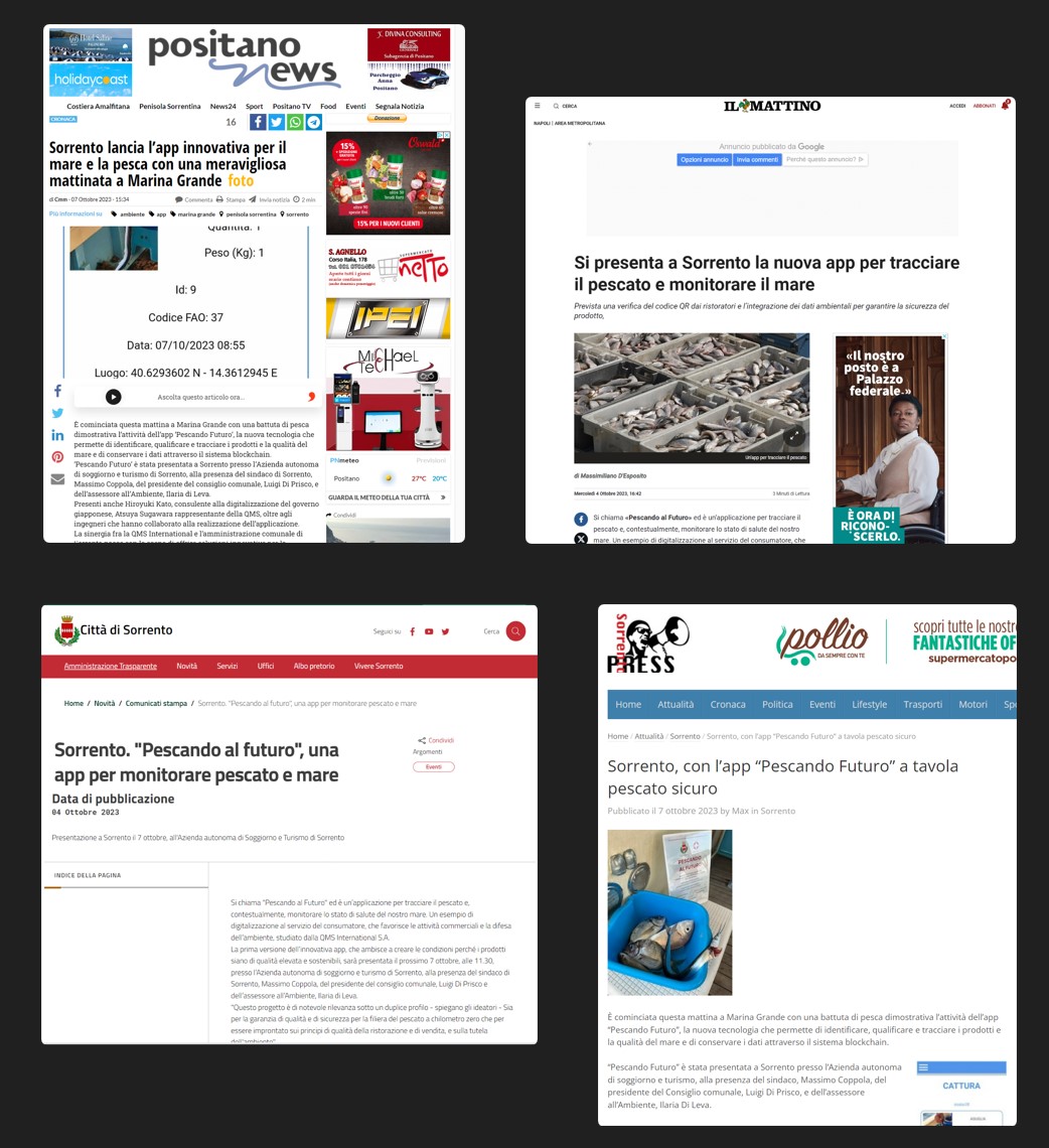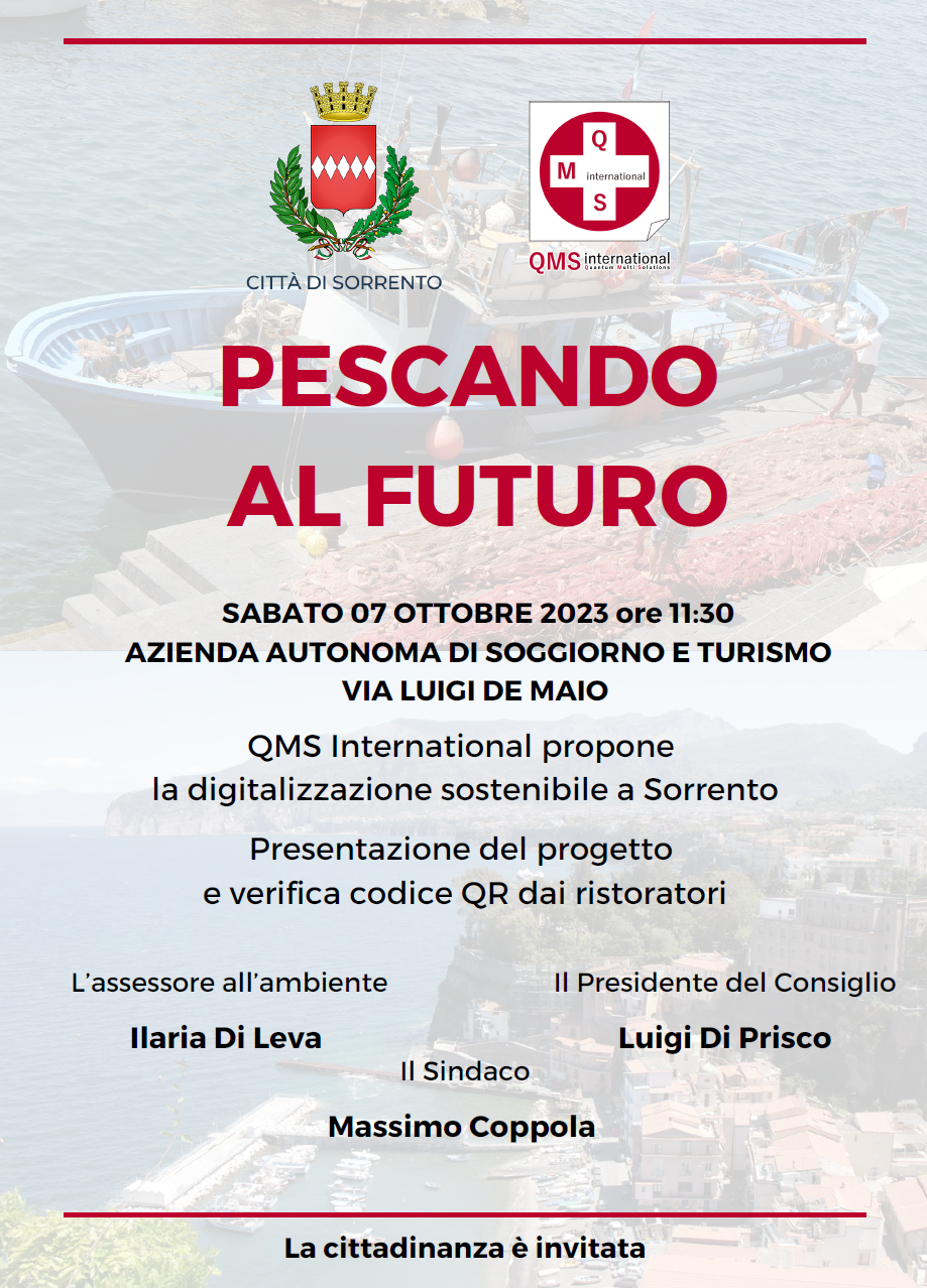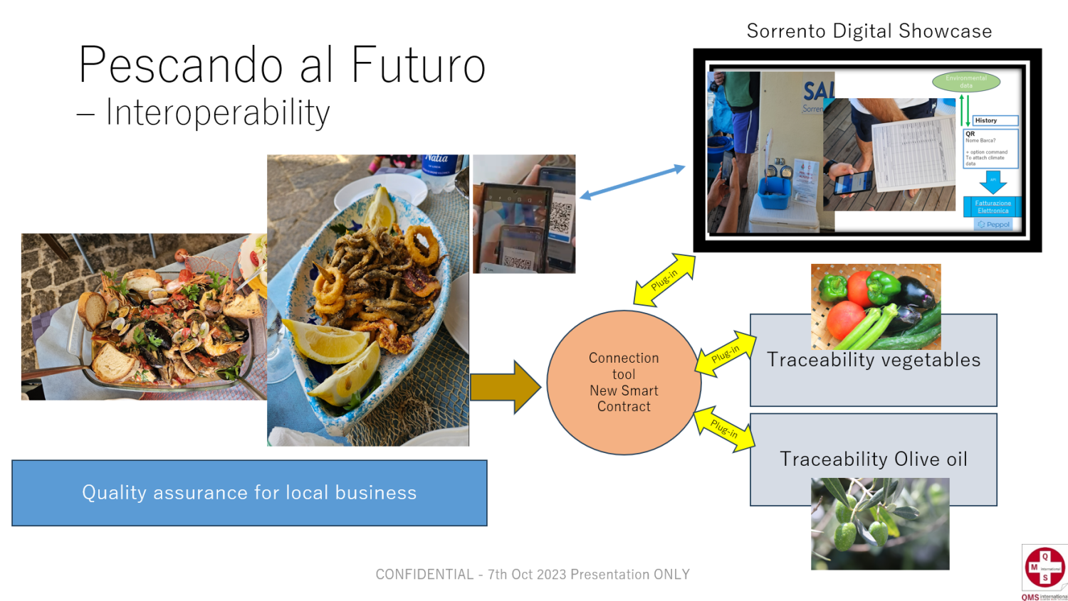202310月7日に、イタリア、ソレント市において、‘Pescando Al Futuro‘と題したイベントを行いました。このイベントは、ブロックチェーンを利用したトレーサビリティーアプリを核とし、食の安全、環境保護、地域経済活性化を可能とするような種々の連携を図っていくデジタル化をソレント市に提案するために企画しました。