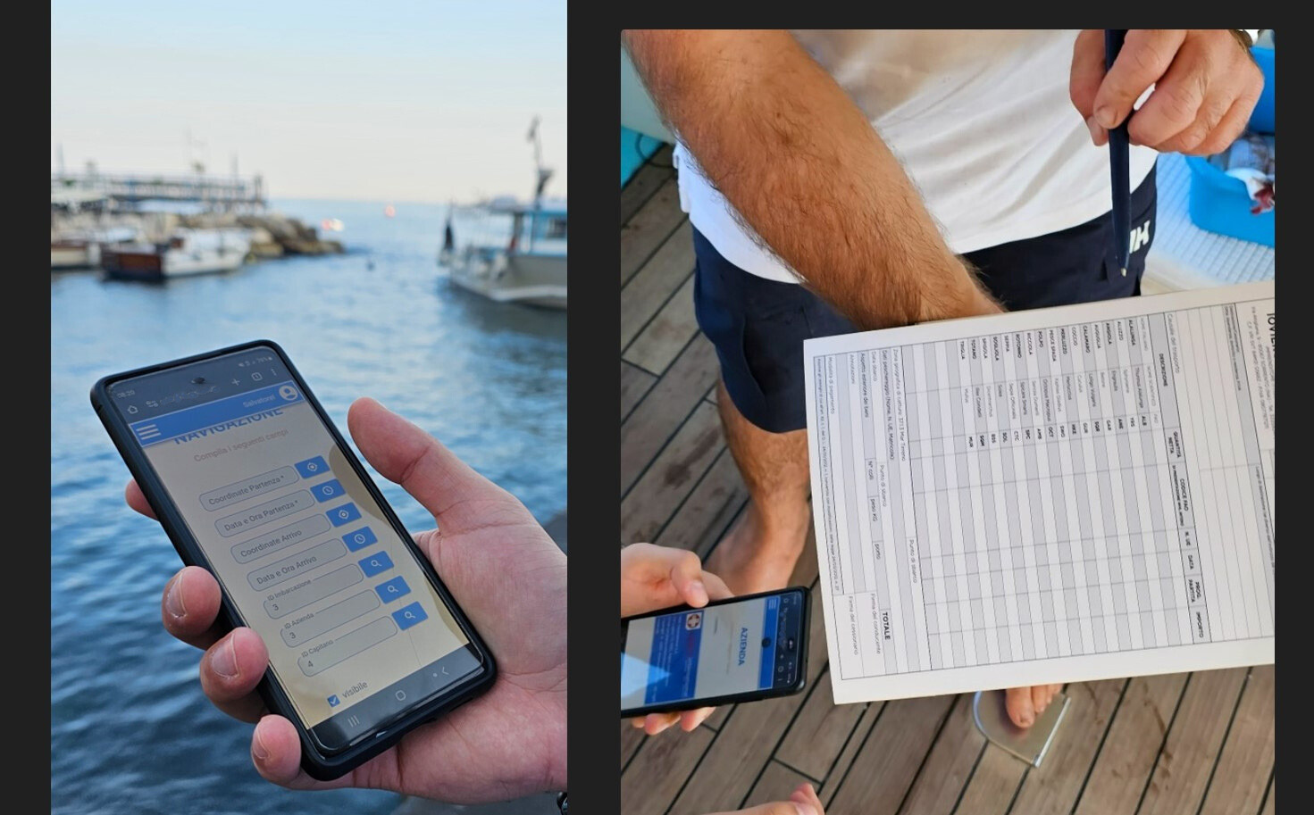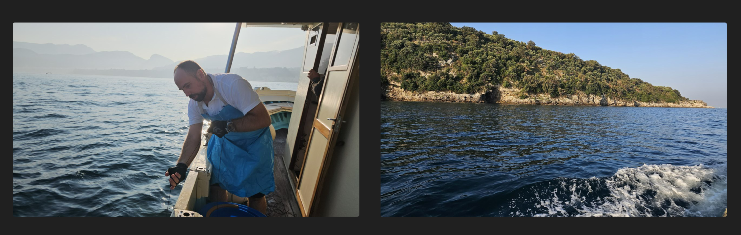 アプリのデモは、地元の漁師、Salvatoreさんの御厚意で、大変貴重な協力を頂き、実際に船を出して行いました。