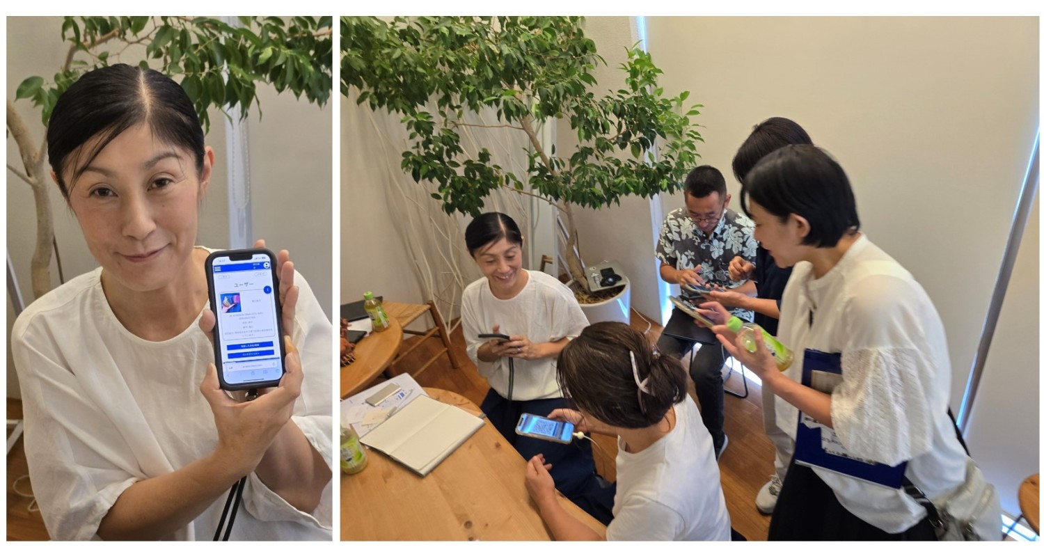 出来上がった二次元コードは参加の皆さんお互いがスキャンをしあって、直感的に各々の商品への思いが購入者に伝わることを体感されました。請求書をゆいまーる沖縄さんに送るデモも行いました。